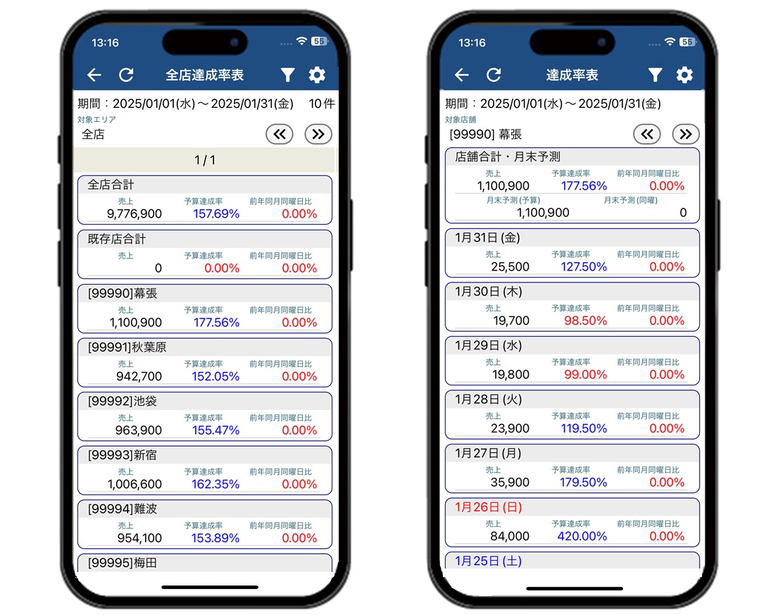 - ●多彩な強調表示機能で、店舗の状況を一目で確認