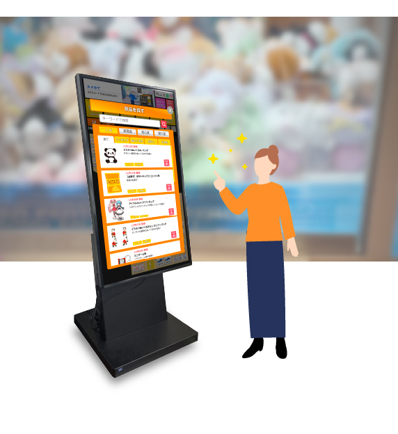 タッチパネル対応のデジタルサイネージがあれば、お客様は、自ら目的の店舗、商品を探すことができます。よってお客様の満足度だけでなく、スタッフの負担を軽減します。
